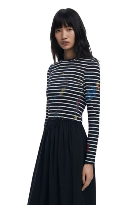Desigual γυναικείο φόρεμα με ρίγες σε συνδυασμό 25WWVW15