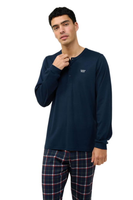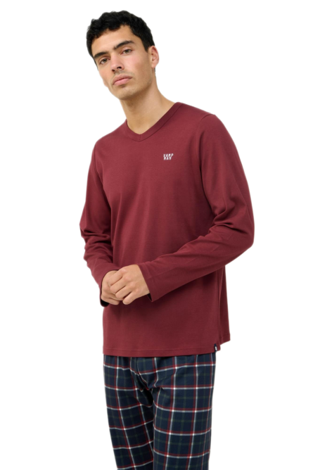 Vamp ανδρική χειμερινή καρό πυζάμα με λαιμόκοψη V 23681