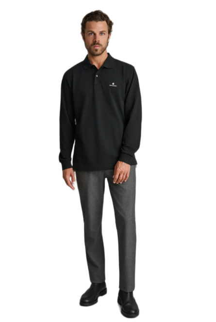 Navy&Green ανδρική μονόχρωμη μακρυμάνικη μπλούζα polo 24EY.030/PL
