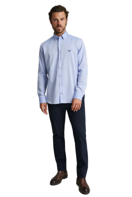 Navy&Green ανδρικό μονόχρωμο πουκάμισο Oxford 24NG.KR134/1B