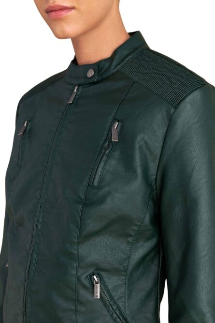 Attrattivo γυναικείο μπουφάν δερματίνης με τσέπες 9921732