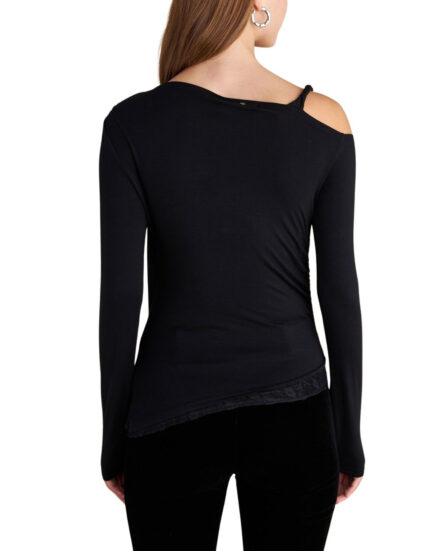 Attrattivo γυναικείο μονόχρωμο τοπ ντραπέ με δαντέλα 9922031