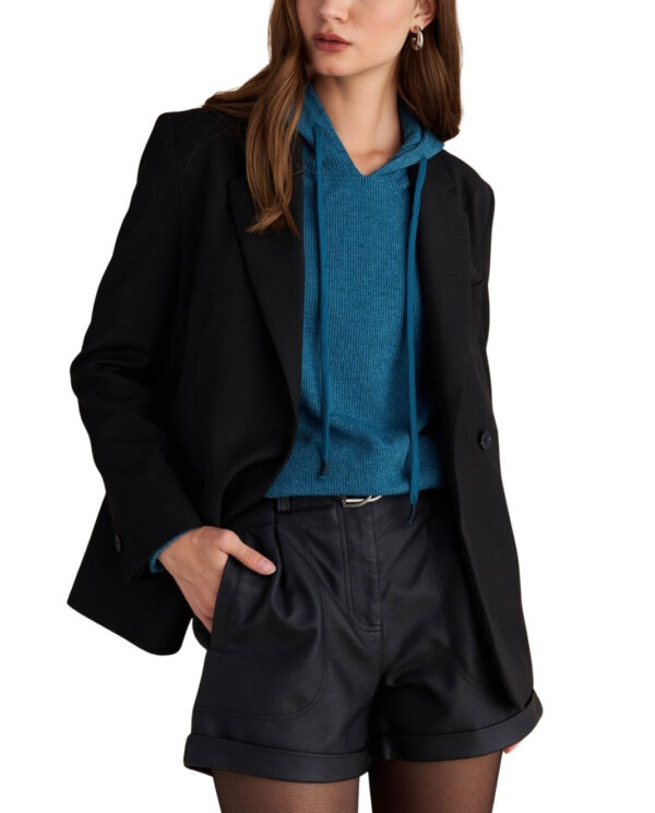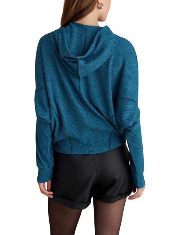 Attrattivo γυναικεία μονόχρωμη πλεκτή μπλούζα με κουκούλα 92501259