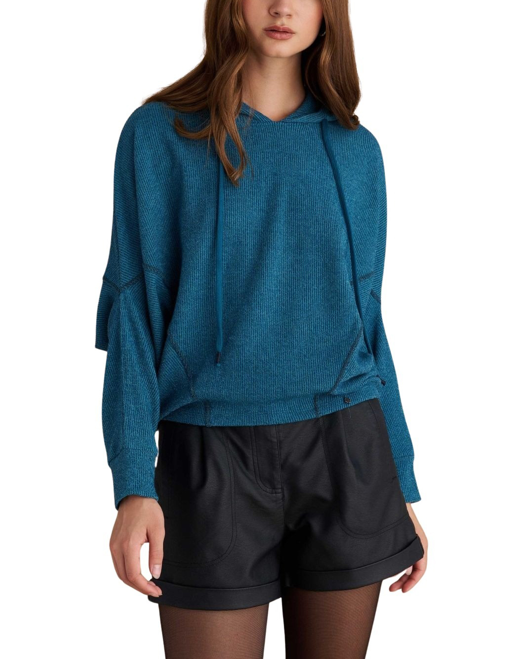 Attrattivo γυναικεία μονόχρωμη πλεκτή μπλούζα με κουκούλα 92501259