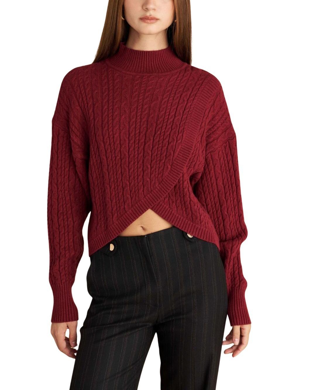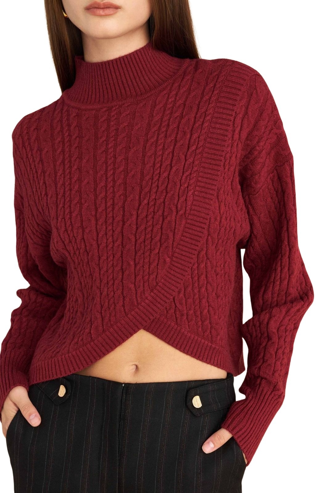 Attrattivo γυναικεία πλεκτή ασύμμετρη μπλούζα 9P22085C