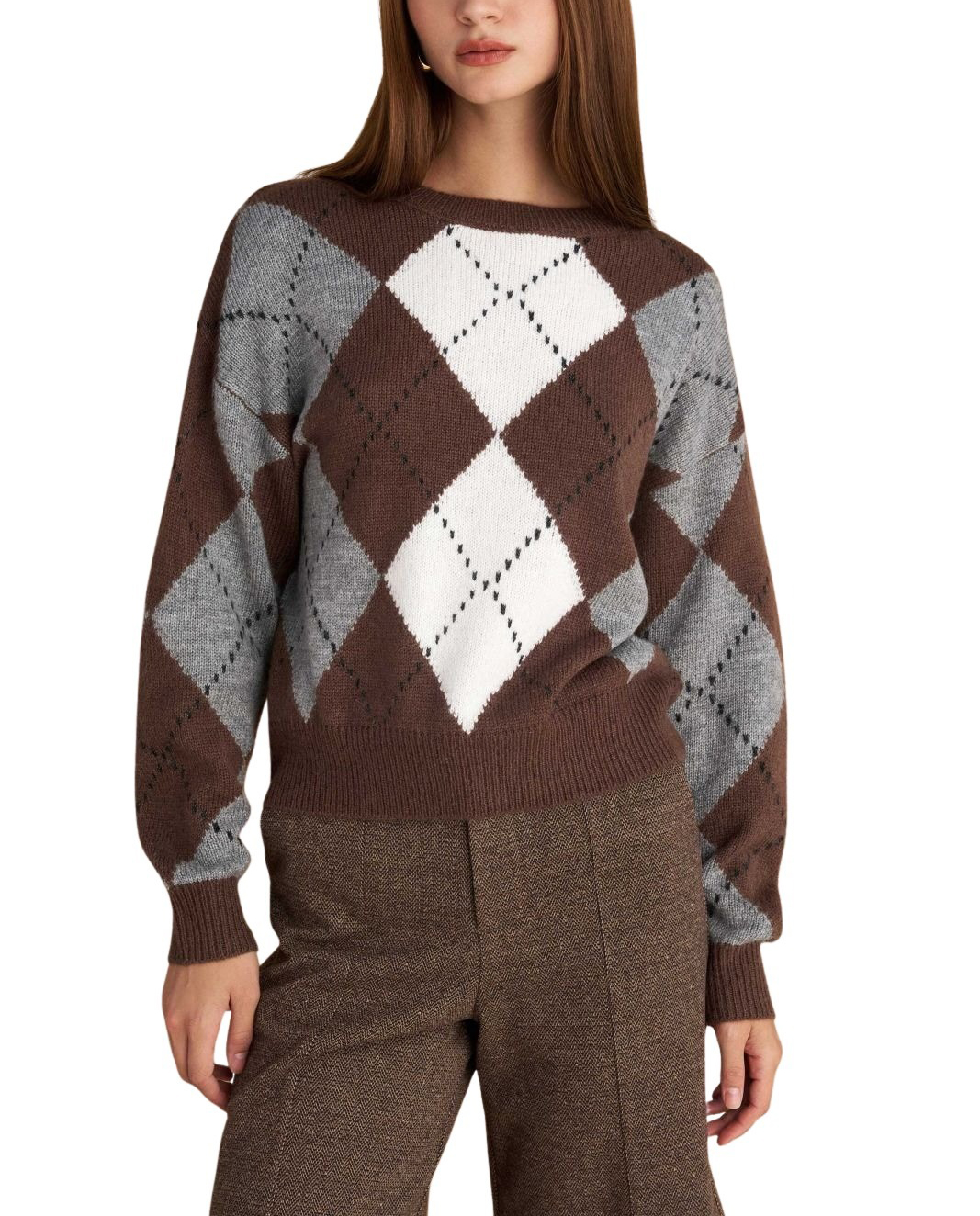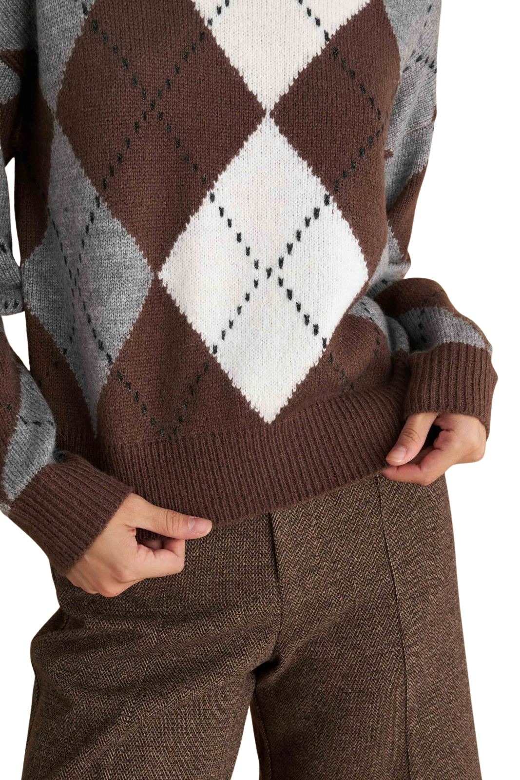 Attrattivo γυναικεία πλεκτή μπλούζα με ρόμβους 9P22976