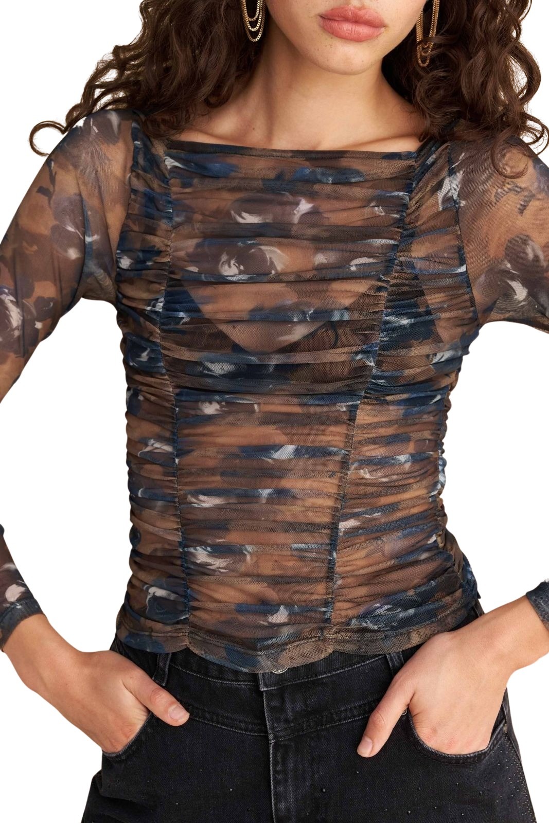 Attrattivo γυναικεία see-through φλοράλ μπλούζα 92237274