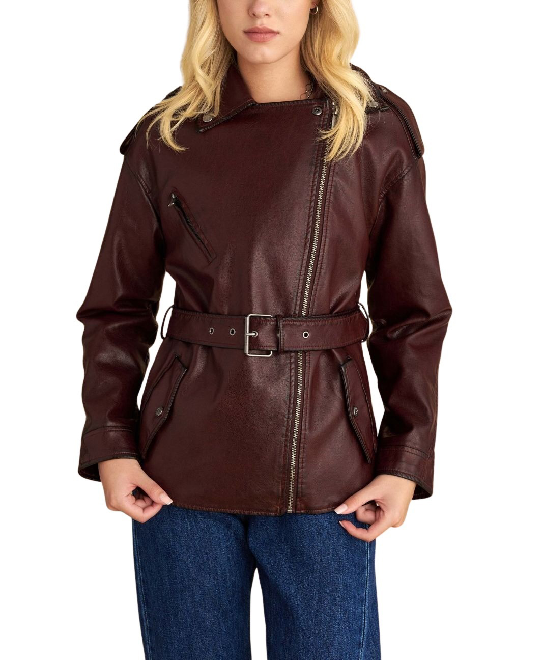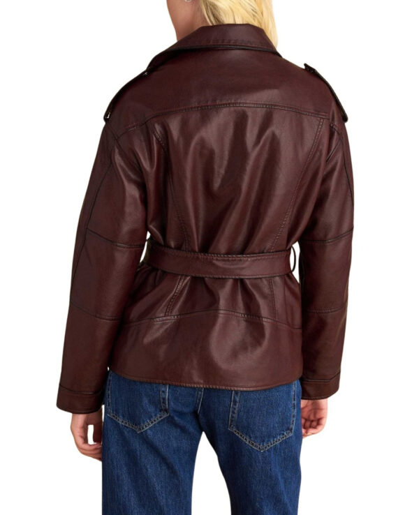 Attrattivo γυναικείο μπουφάν δερματίνη με ζώνη 9921734