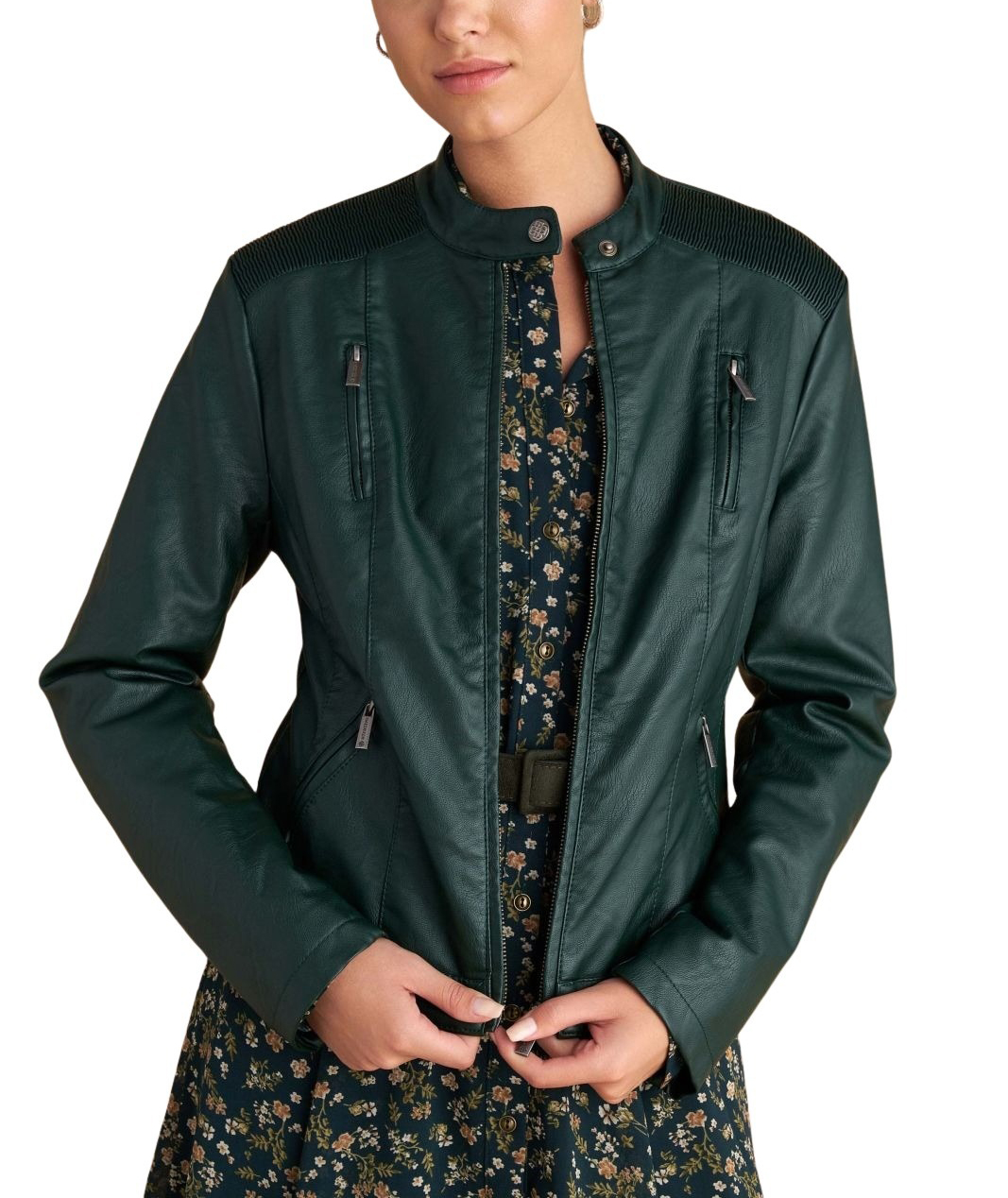 Attrattivo γυναικείο μπουφάν δερματίνης με τσέπες 9921732