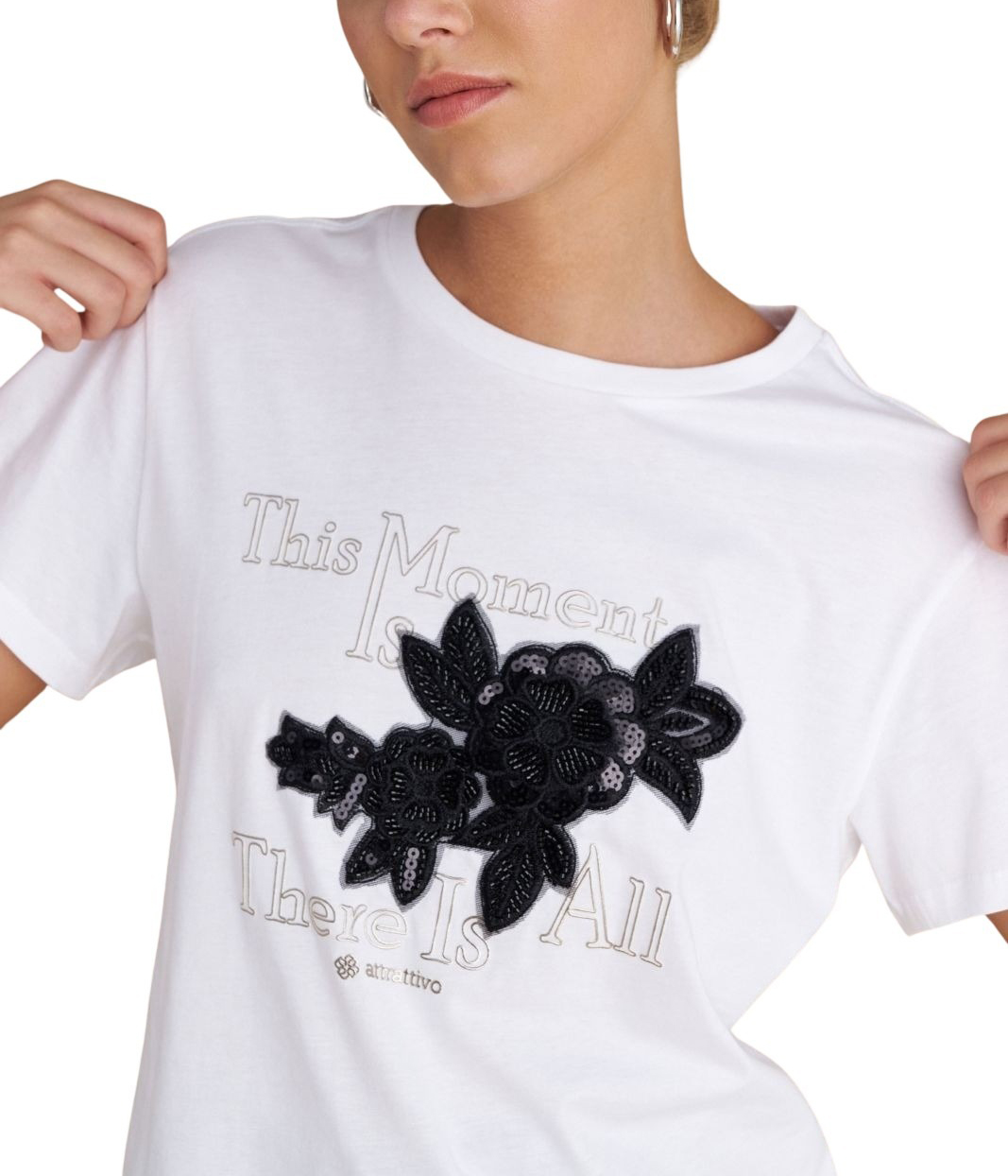 Attrattivo γυναικείο κοντομάνικο t shirt με στάμπα παγιέτα 9921802