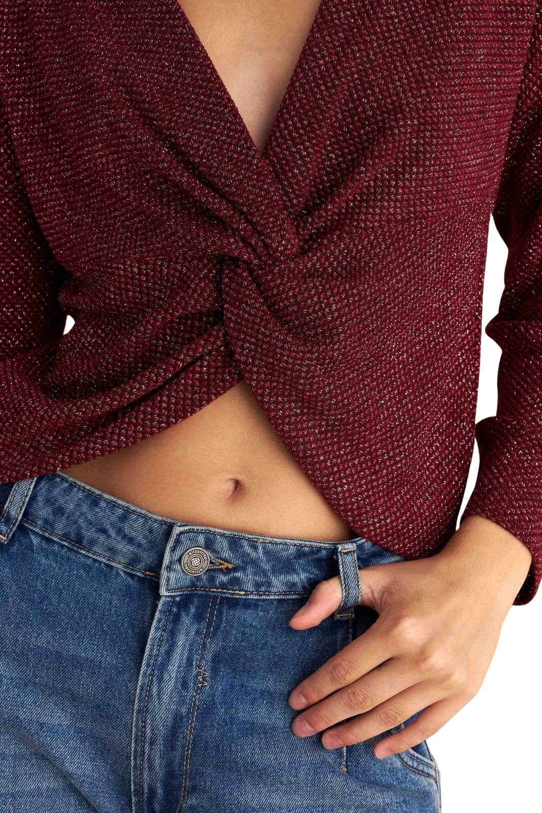 Attrattivo γυναικείο λούρεξ τοπ με κόμπο 92308293