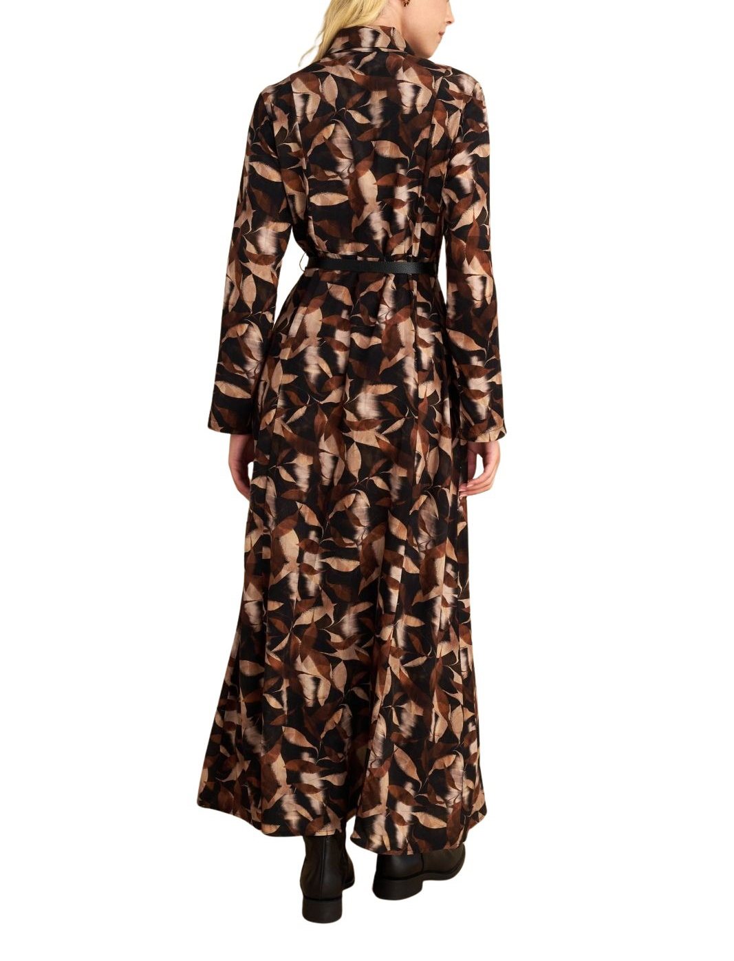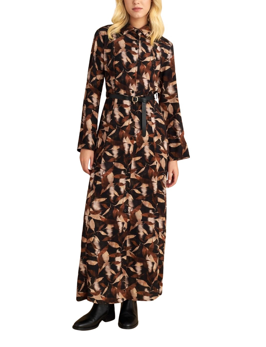 Attrattivo γυναικείο μακρύ εμπριμέ φόρεμα με ζώνη 9922429