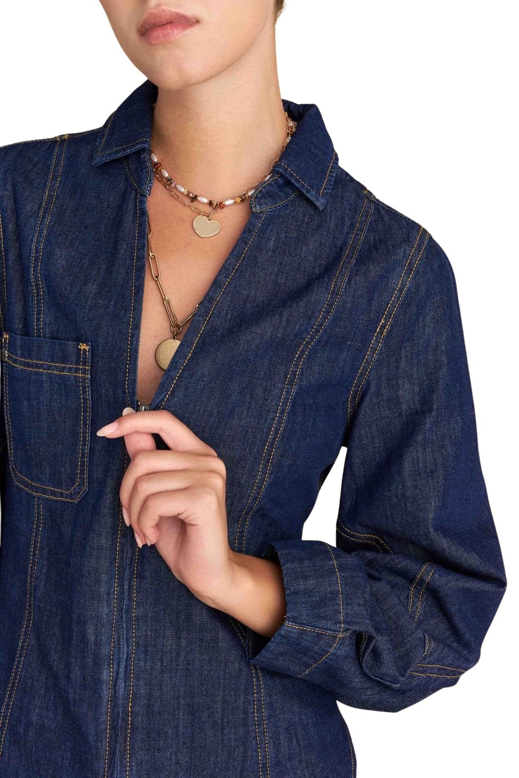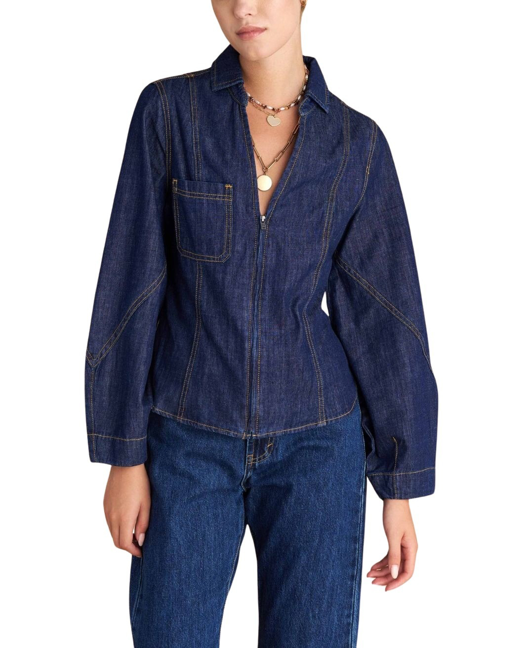 Attrattivo γυναικείο μεσάτο τζιν πουκάμισο με φερμουάρ 9922680