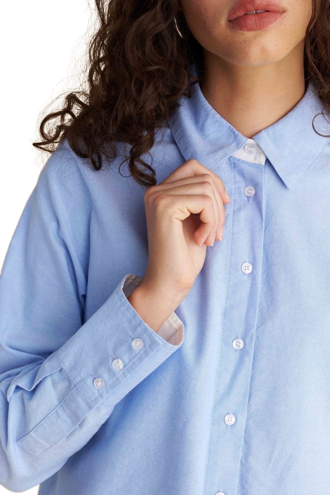 Attrattivo γυναικείο μονόχρωμο βαμβακερό πουκάμισο 9922227