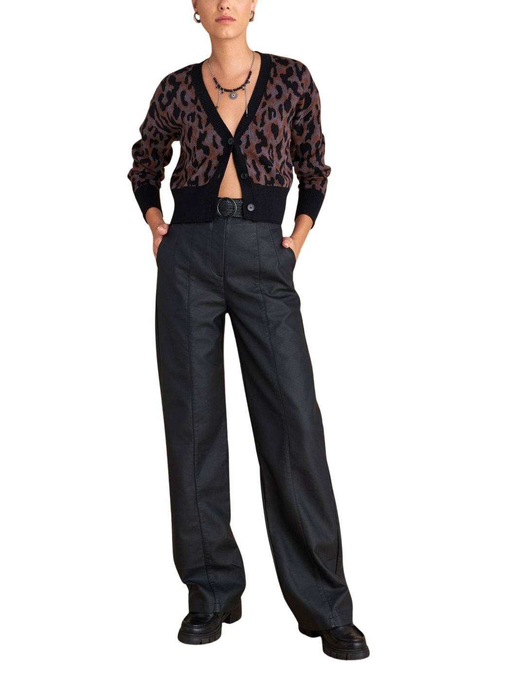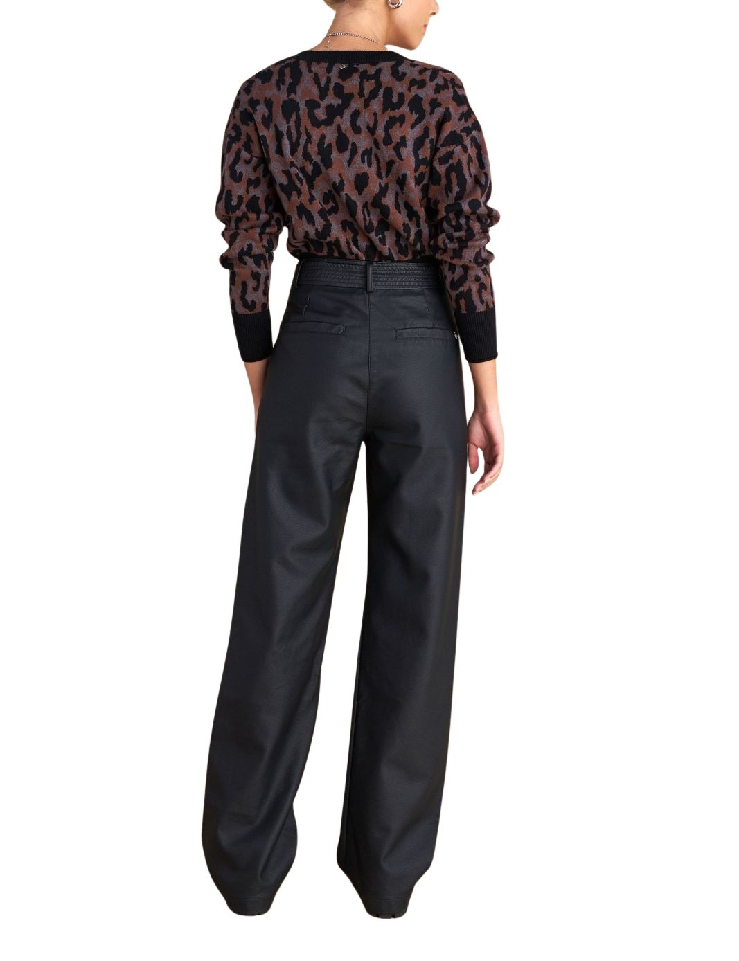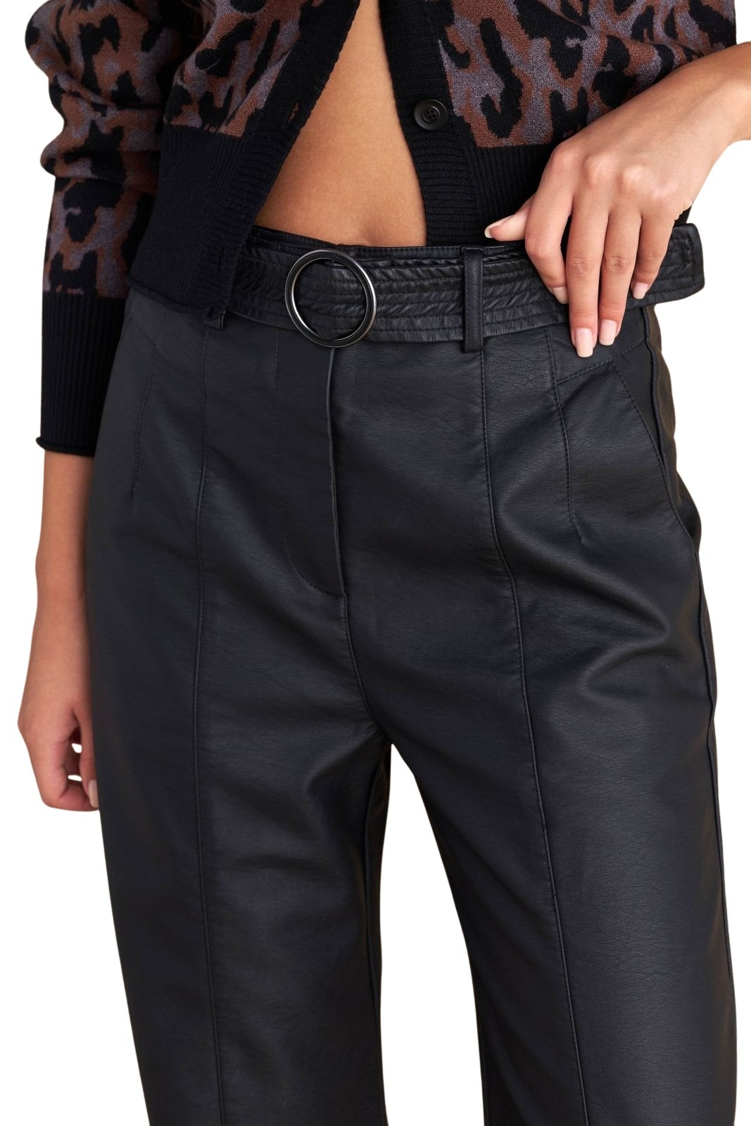 Attrattivo γυναικείο παντελόνι δερματίνης με ζώνη 9921529