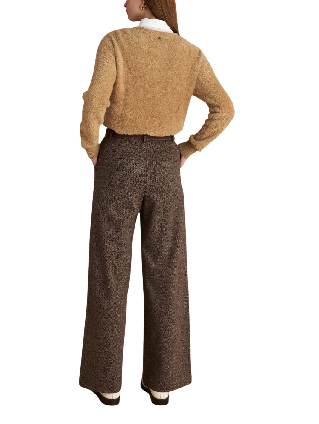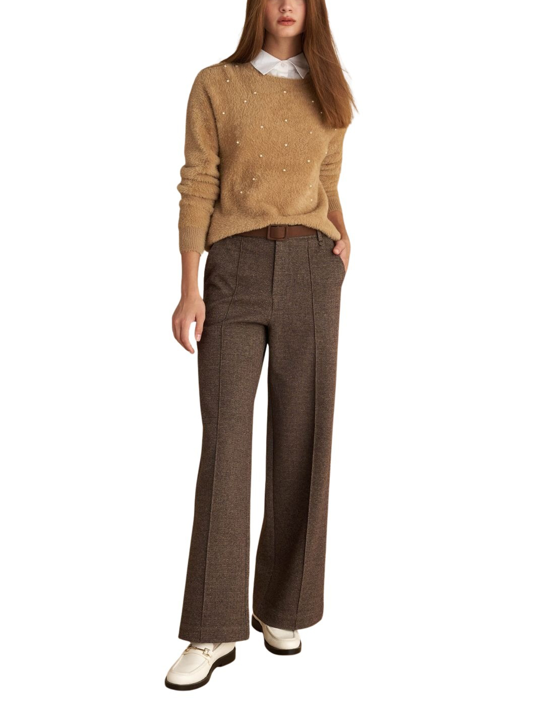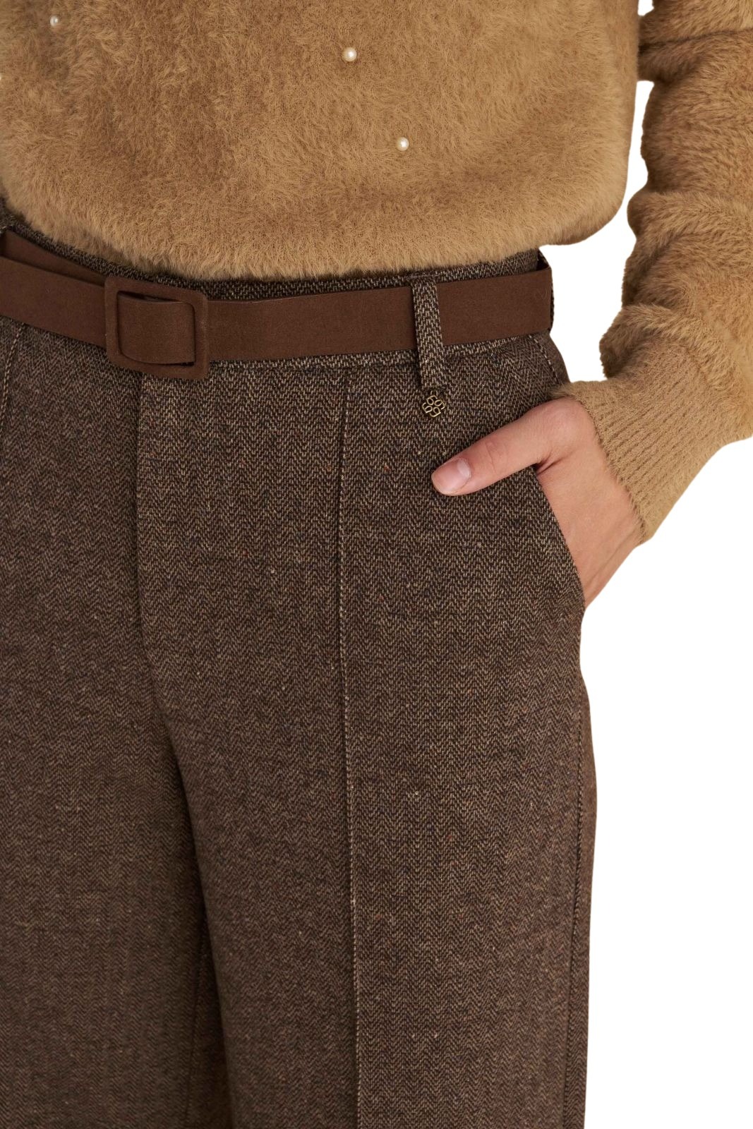 Attrattivo γυναικείο ψηλόμεσο τουίντ παντελόνι με ζώνη 9921570