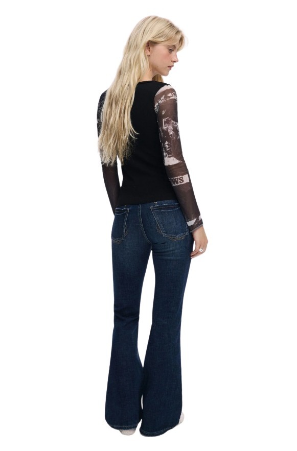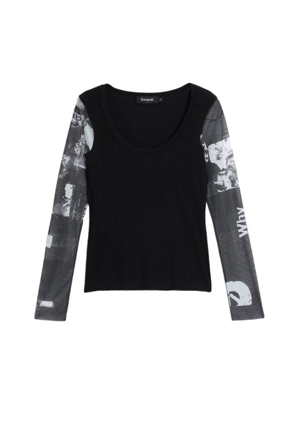 - Μακρύ ημιδιαφανή μανίκι από τούλι με τύπωμα εφημερίδας