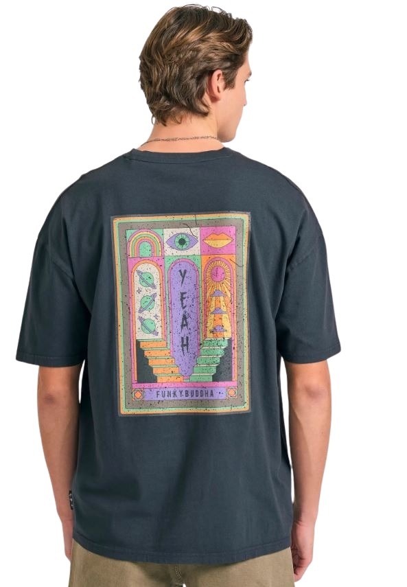 Funky Buddha ανδρικόμονόχρωμο t-shirt τύπωμα FBM012-030-04