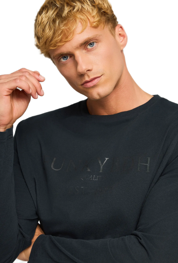 Funky Buddha ανδρικόμονόχρωμο t-shirt τύπωμα FBM012-030-04