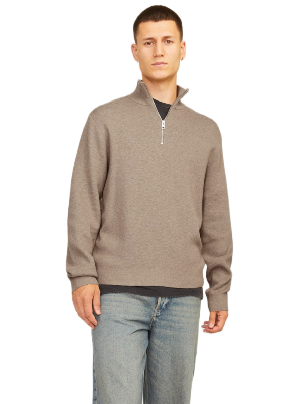 Jack&Jones ανδρικό μονόχρωμο πλεκτό πουλόβερ με φερμουάρ 12259664