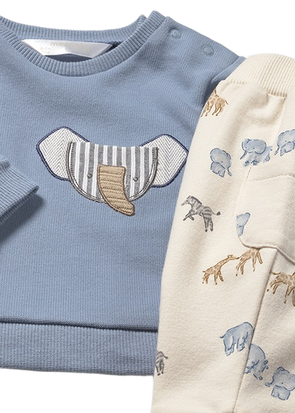 Μπλούζα: 95% βαμβάκι, 3% πολυεστέρας, 1% Βισκόζη, 1% Ελαστάνη. Παντελόνι: 99% βαμβάκι, 1% Ελαστάνη.