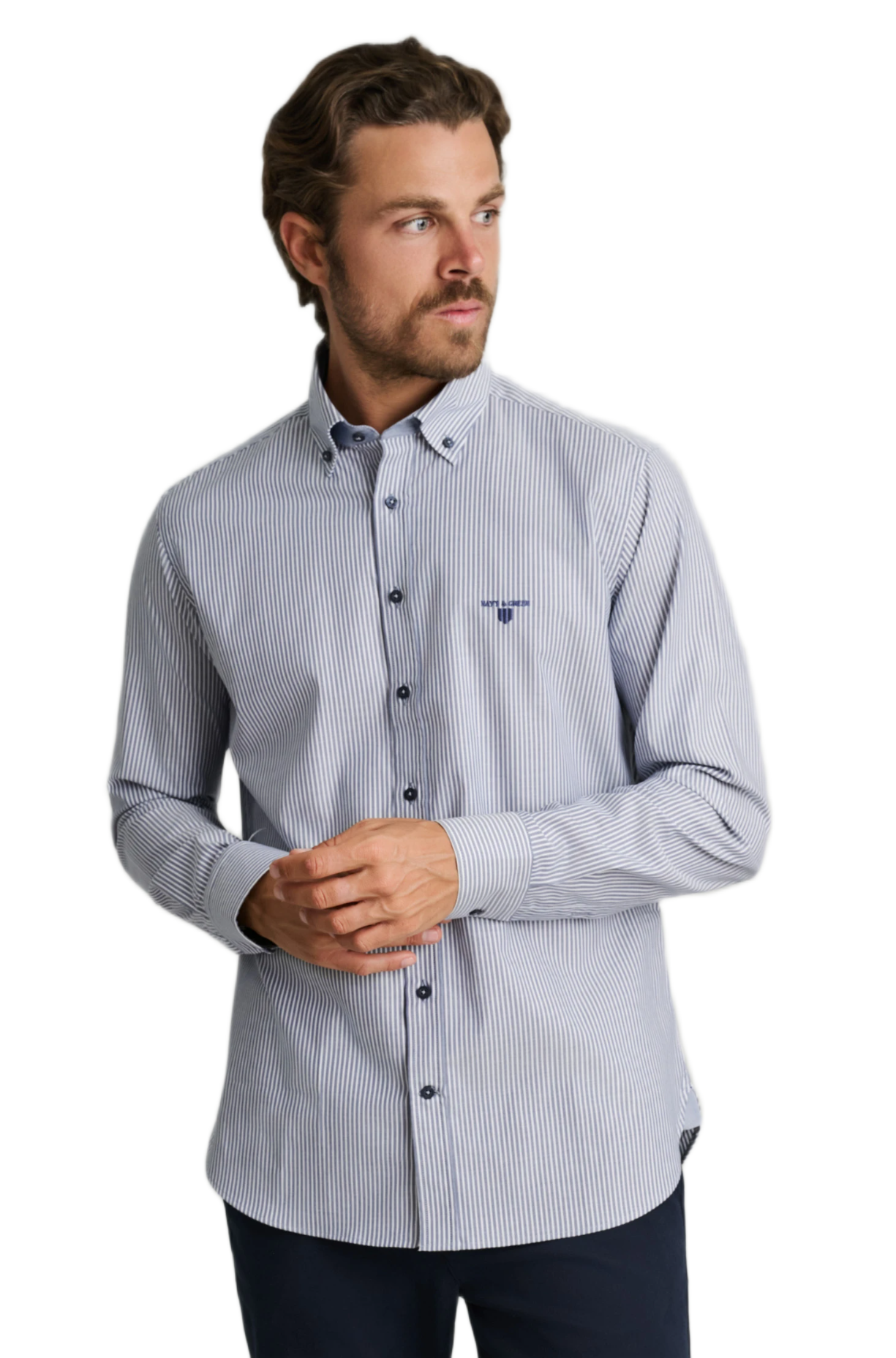 Navy&Green ανδρικό μακρυμάνικο ριγέ πουκάμισο 24NG.BX248/1B