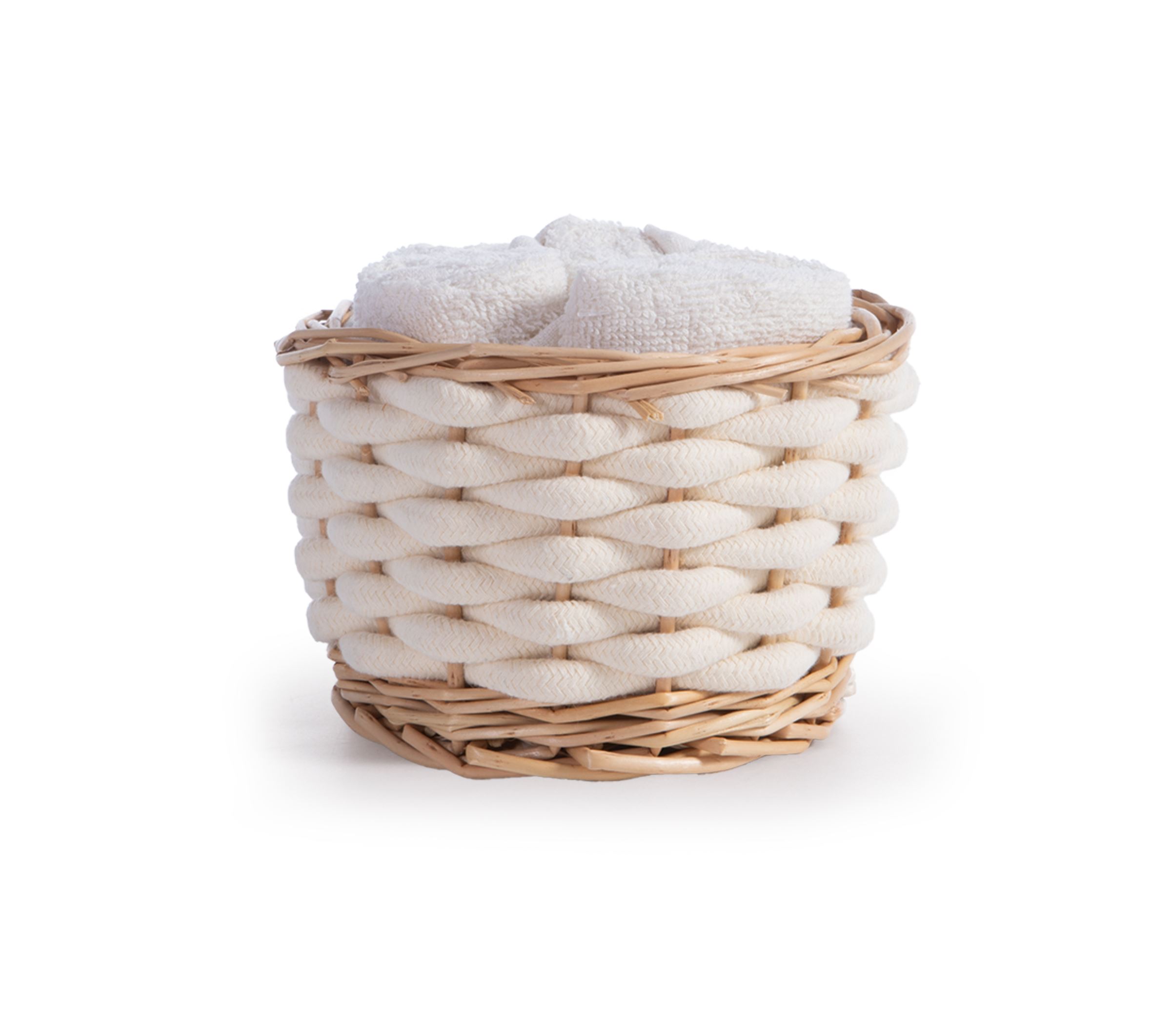 • Ψάθινο καλαθάκι με πλεκτό χοντρό σχοινί