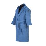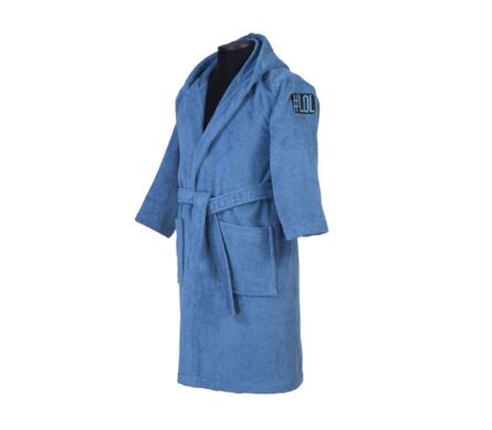 • Παιδικό βαμβακερό μπουρνούζι με κουκούλα, ζώνη στη μέση, δύο μεγάλες τσέπες και κέντημα στο μανίκι.