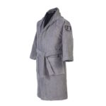 • Παιδικό βαμβακερό μπουρνούζι με κουκούλα, ζώνη στη μέση, δύο μεγάλες τσέπες και κέντημα στο μανίκι.