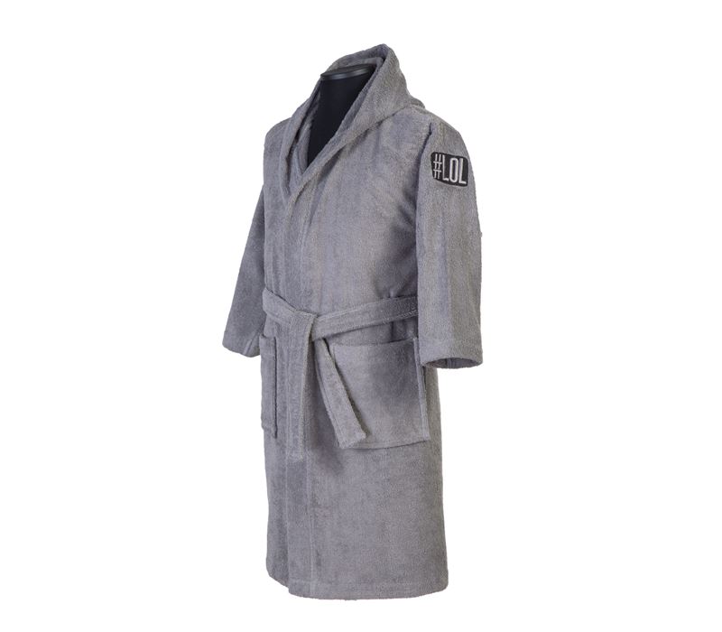 • Παιδικό βαμβακερό μπουρνούζι με κουκούλα, ζώνη στη μέση, δύο μεγάλες τσέπες και κέντημα στο μανίκι.