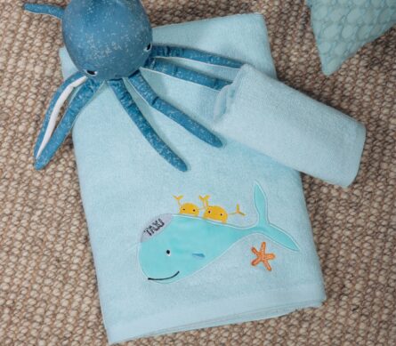 • Χαριτωμένο σχέδιο φαλαινάκι με κεντητές λεπτομέρειες