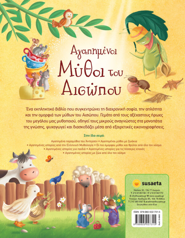 • Ένα βιβλίο γεμάτο με τους υπέροχους μύθους του Αισώπου, με εξαιρετικές εικονογραφήσεις που μαθαίνουν στα παιδιά βασικές αξίες της ζωής! Κατάλληλο για παιδιά ηλικίας: 6+ετών.