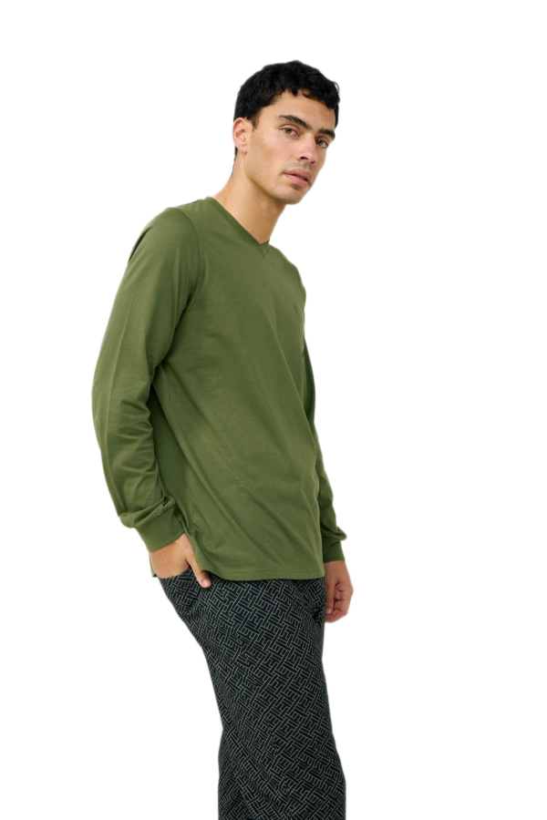 Vamp ανδρική χειμερινή πυζάμα με γεωμετρικό σχέδιο και λαιμόκοψη V 23651