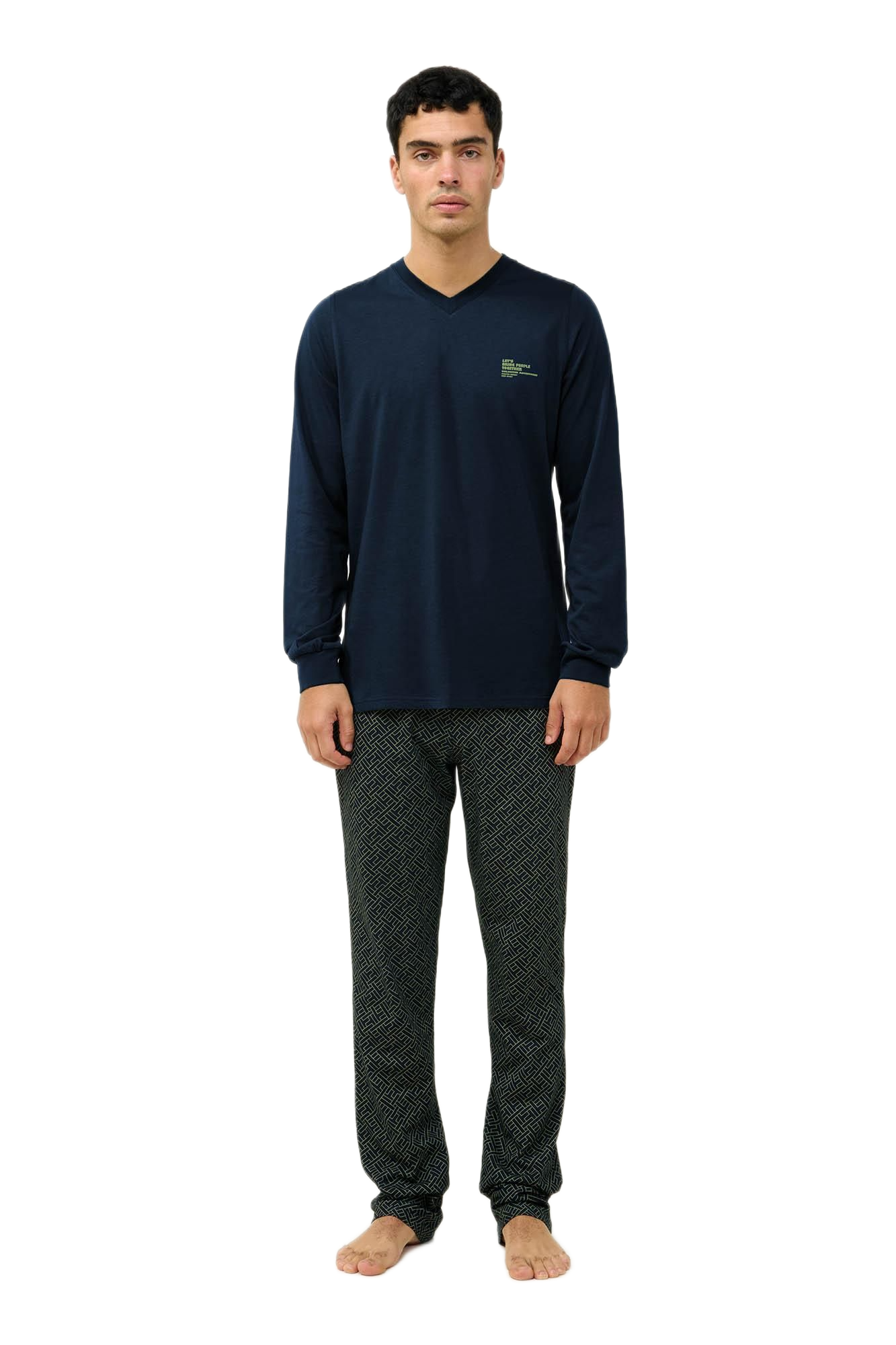 Vamp ανδρική χειμερινή πυζάμα με γεωμετρικό σχέδιο και λαιμόκοψη V 23651