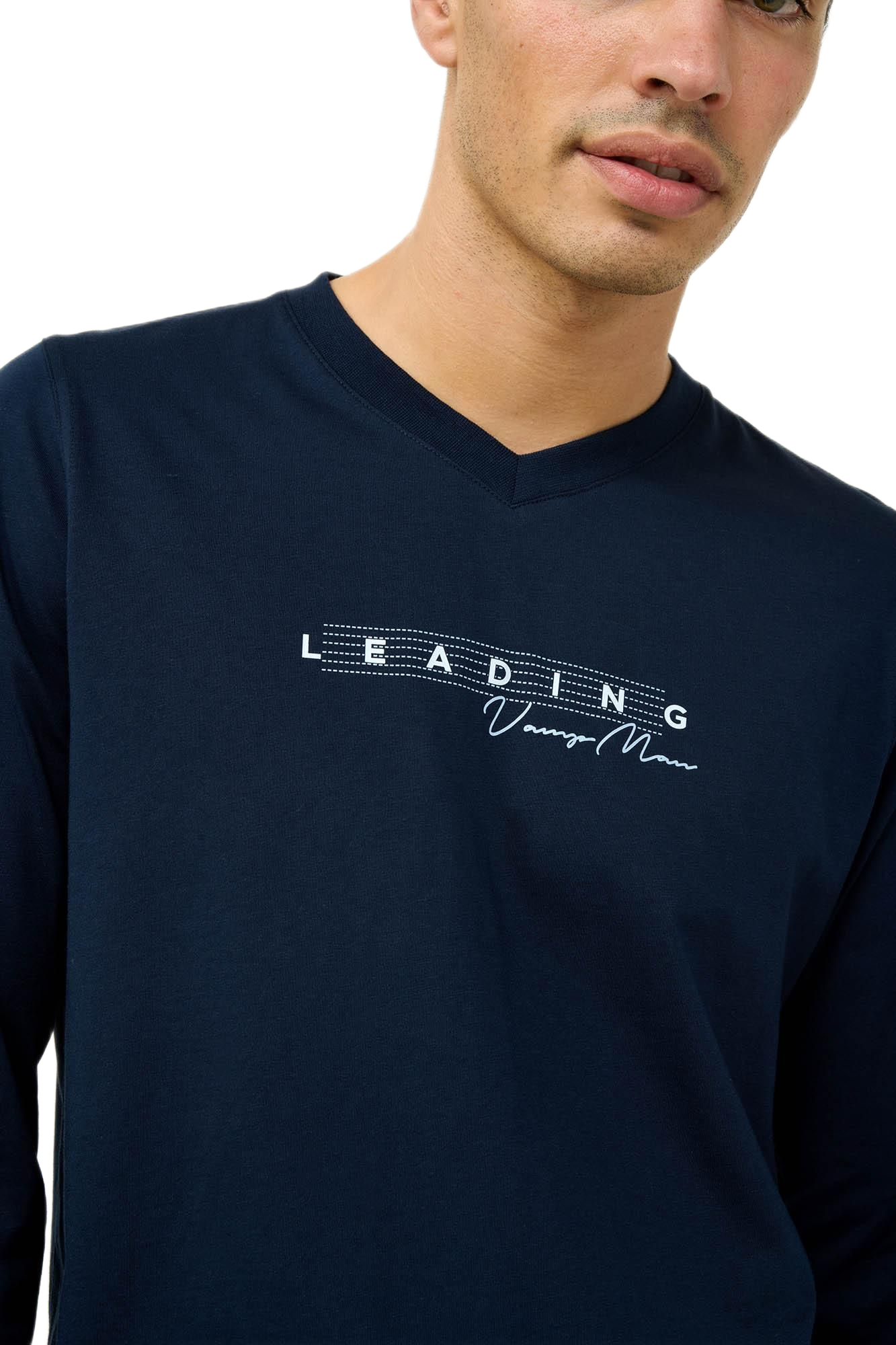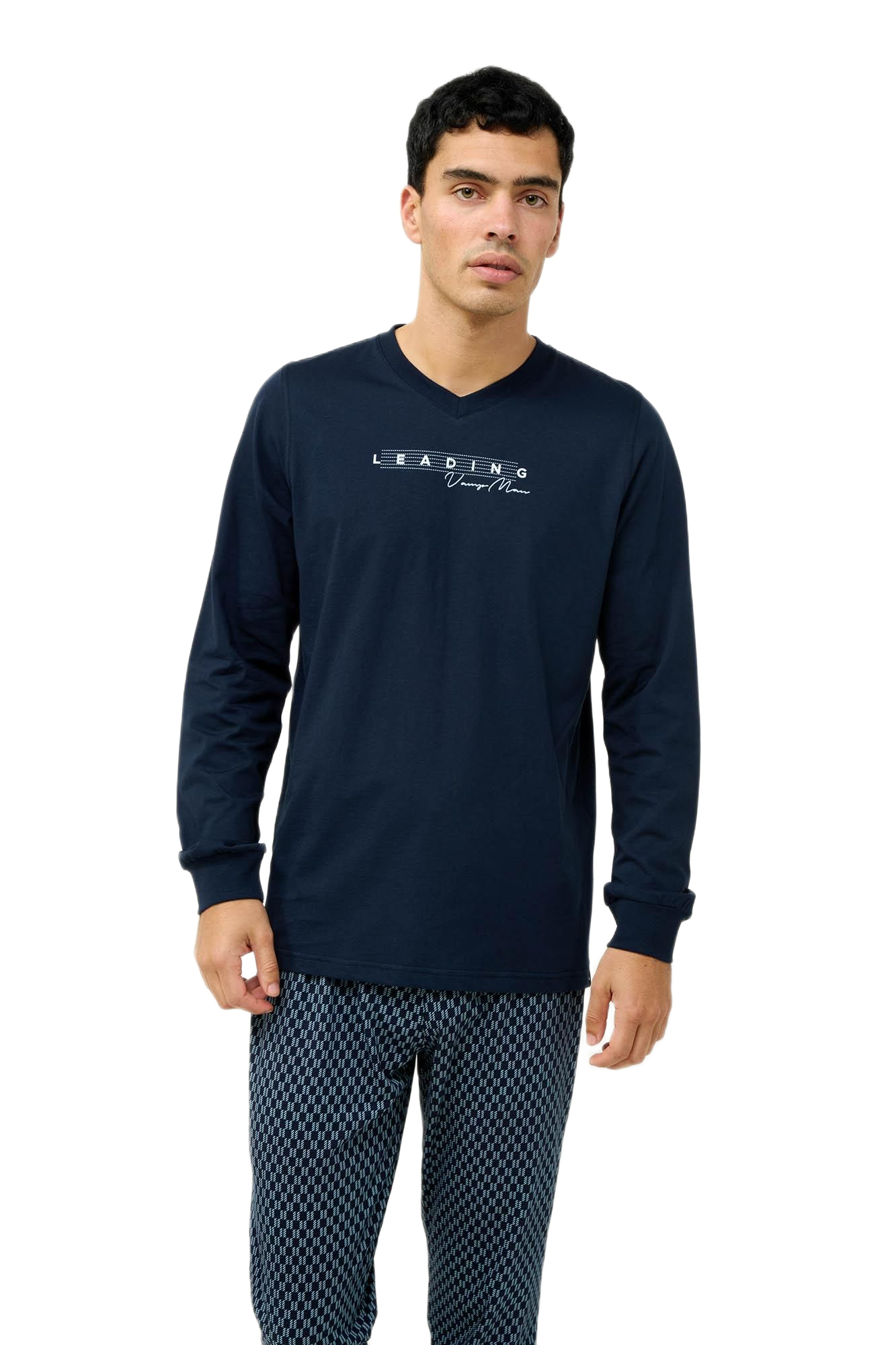Vamp ανδρική χειμερινή πυζάμα με γεωμετρικό σχέδιο και λαιμόκοψη V 23672