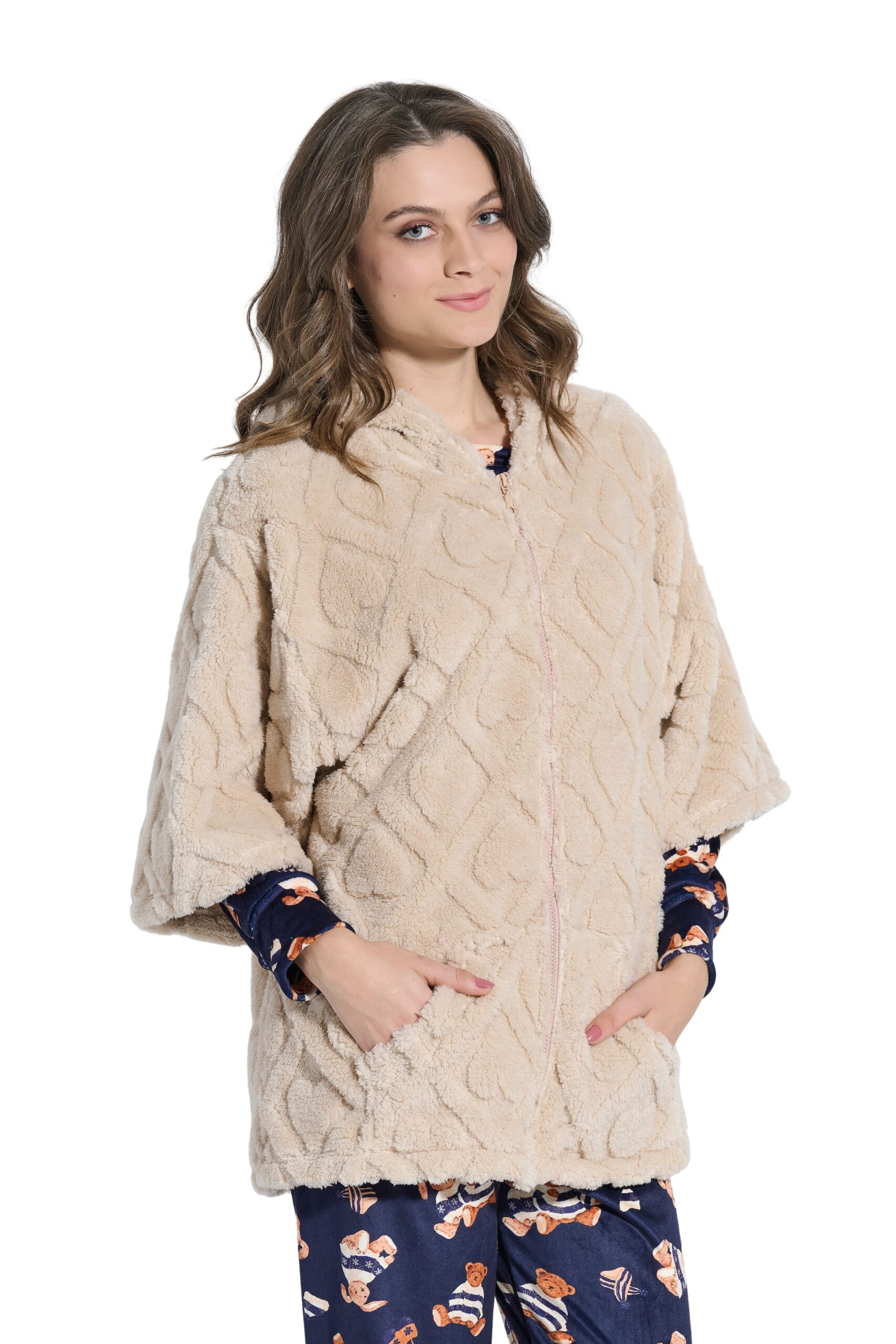 Jeannette γυναικεία fleece ρόμπα με καρδιές 8171